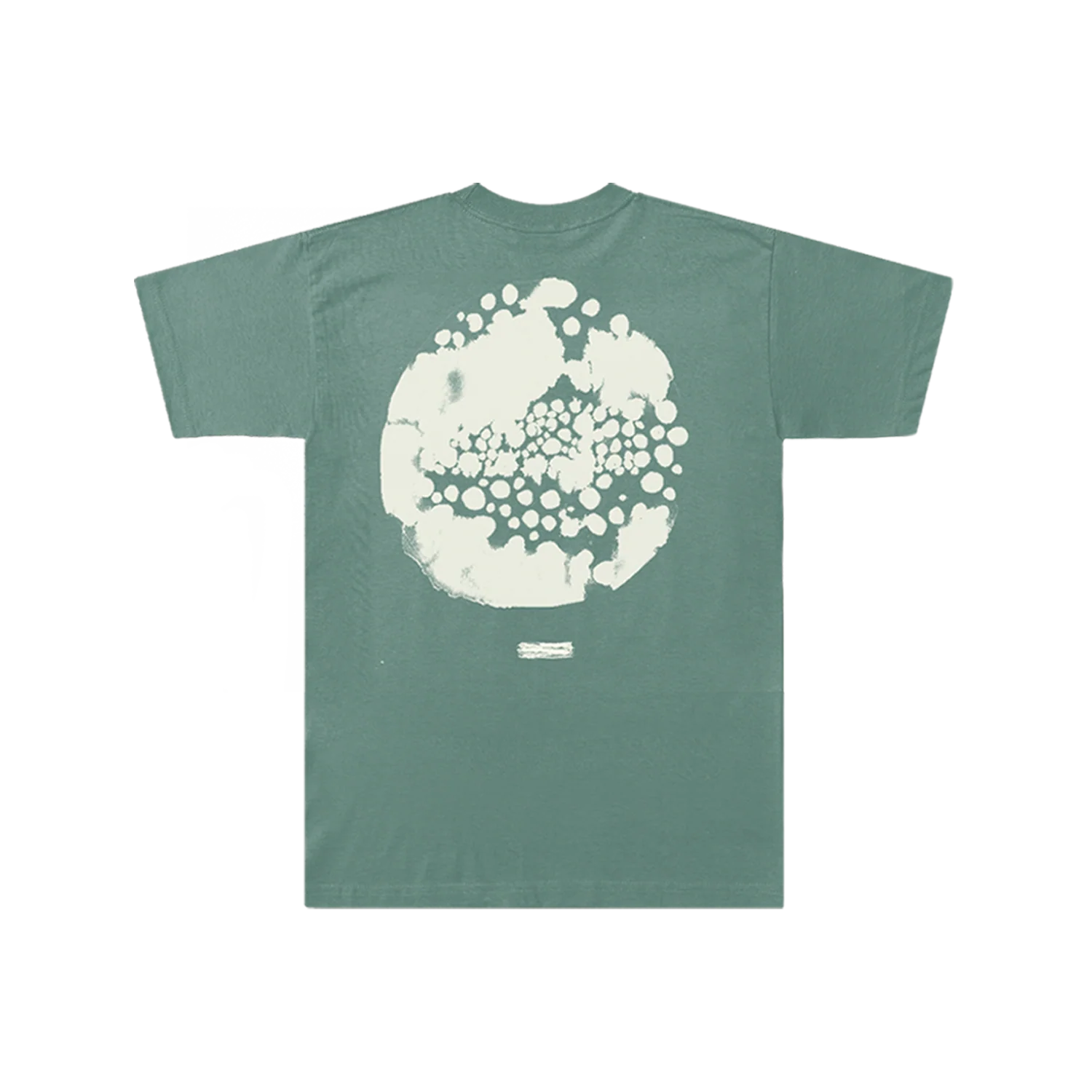 100% cotton, enzyme washed t-shirt in pale green, featuring chest print and large artwork print on the back.